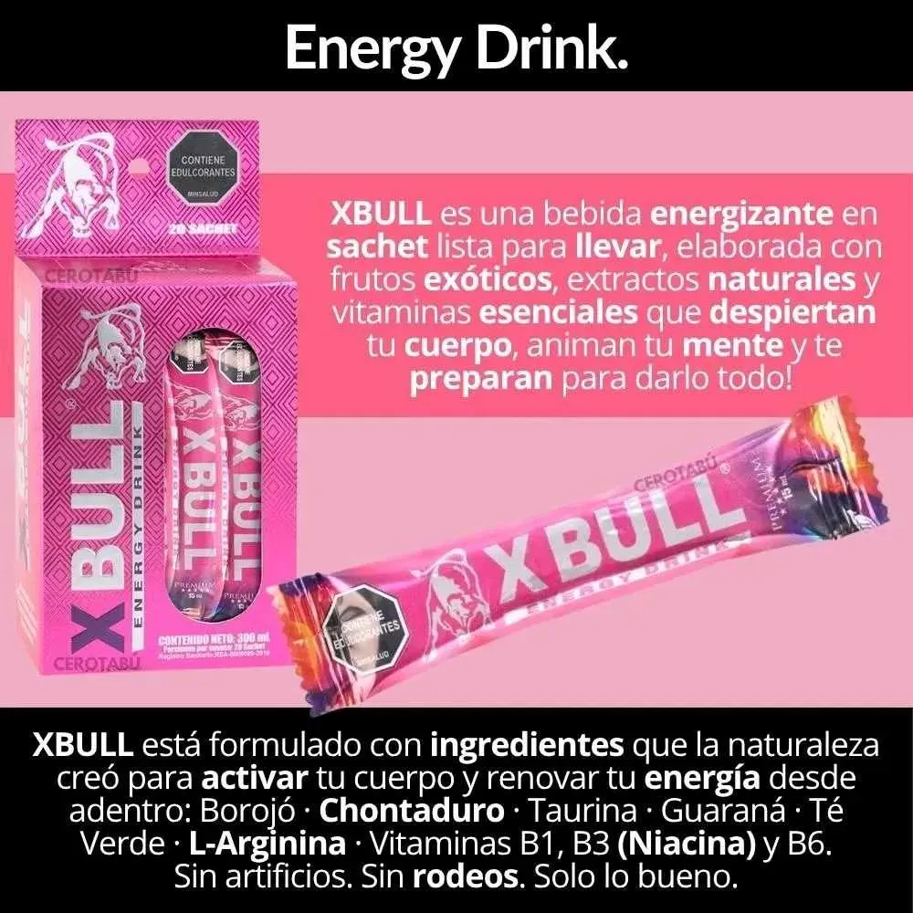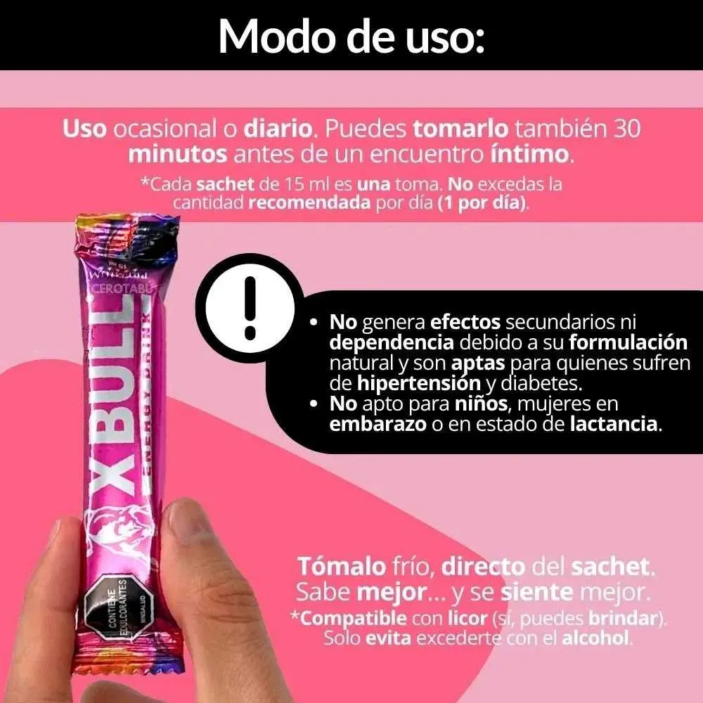 Redescubre tu energía, tu deseo y tu poder con Xbull Mujer, una bebida energizante en sachet diseñada especialmente para potenciar la vitalidad femenina y elevar el deseo sexual de forma natural. Su fórmula ha sido creada cuidadosamente con ...