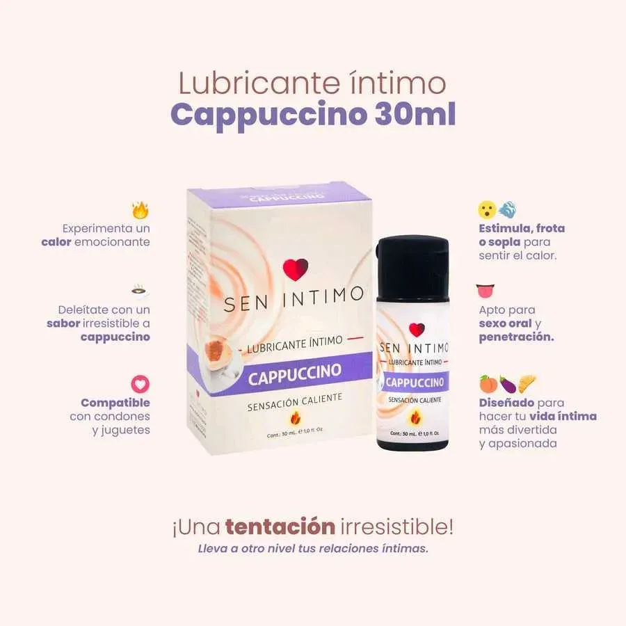 Descubre un nuevo nivel de placer con nuestro Lubricante Caliente Cappuccino Sen Íntimo. Creado para intensificar tus momentos íntimos, este lubricante te envuelve en una sensación cálida y estimulante, acompañada de un delicioso sabor a cappuccino que convierte cada encuentro en una experiencia irr...