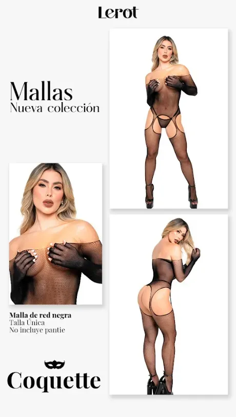 Desata tu lado más seductor con el conjunto Coquette, una pieza de lencería erótica que fusiona elegancia y provocación. Este body con medias integradas, diseñado en malla de red, es ideal para resaltar tu figura de manera sensual, con detalles que marcan la diferencia y ...