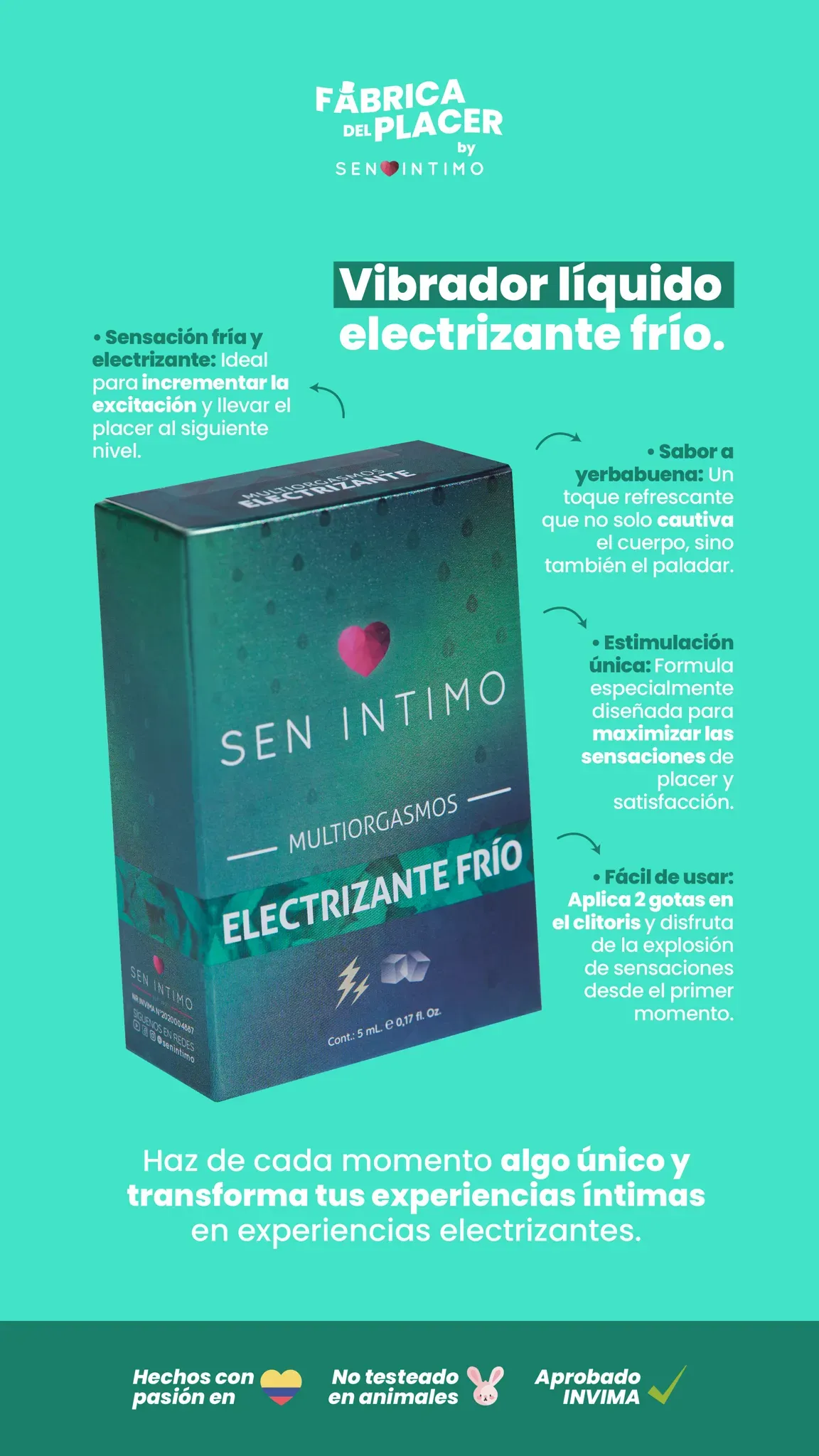 Descubre una experiencia sensorial completamente nueva con nuestro Vibrador Líquido Electrizante frío, el producto más innovador de nuestra línea diseñado para llevarte al límite del éxtasis. Este estimulante líquido de sensación fría, con un toque único de sabor a yerbabuena, se convierte en el com...