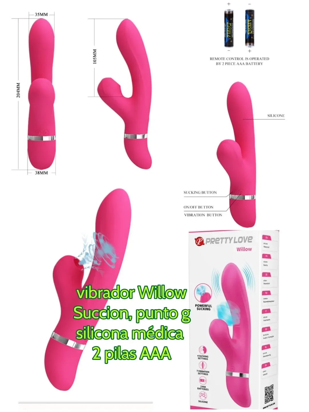 Funcionamiento: 7 funciones de vibración 4 funciones de succión